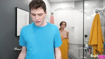 Description: Nikki Nicole peels off her clothes as she prepares to jump into the shower. The super skinny coed is enjoying the warm water when it abruptly becomes cold. Wrapping herself in a towel Nikki calls her stepbrother Jodie Johnson to ask him for his help. Jodie tries to tell Nikki that he has to study but she throws the towel at him and says she ll let him see her naked if he helps her. True to her word Nikki tells Jodie to come in and look his fill after he fixes the water heater. She invites him into the shower to wash her. Then Nikki washes Jodie ending by soaping up his dick. She claims she s going to help him overcome his shyness as she strokes his dick then gets on her knees to suck him off. After Nikki s deep throat shower BJ they move to the bedroom where Nikki sucks Jodie off again and then climbs on top of him to ride in cowgirl. Jodie spoons behind Nikki and shoves back inside as she lifts her leg to help him go deeper. Rolling onto her belly Nikki moans as Jodie plows her pussy. Nikki finishes herself off with a reverse cowgirl ride. Then she gets on her knees so Jodie can nut right into her mouth.