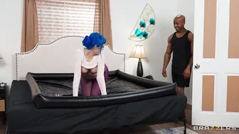 Description: Jewelz Blu wearing sheer tights plays with a big bucket of nuru gel pouring all over her body and getting sopping wet. Thats when Mazee The Goat enters and takes over tearing her tights and hotdogging her ass with his giant cock and the wet and wild fuckfest begins.