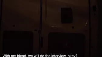 Description: We saw a girl standing on the side of the road and she looked like an ideal candidate for the mobile confession van. We convinced her to get inside with offers of phones tablets and cash. Once inside we started the interview and told her if she could last until the end she would get 1000 euro. She tried to act innocent during the interview but we could tell she was a slut. She said she had only fucked two guys but also that she fucked for money. It didn t add up! She confessed that she cheated on her boyfriend for money and would show off her tits so we demanded to see how she sucked cocks. I fucked her filthy face then she rode my cock while I poured oil on her ass! After I was finished with her pussy we pushed her face down on a stool and came all over her.