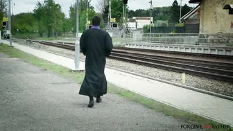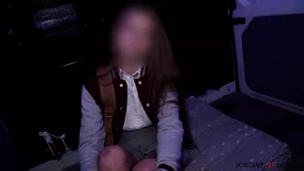 Description: We saw this blonde woman wearing a letter jacket so we walked up and asked if she would like to confess. A college student the woman was very interested in our offer of a phone and 400 euro so she came with us in the van. Once inside she admitted to sucking ten cocks including two at once. She happily showed us her perky tits then tried to deepthroat my big dick. I lay her back on our dirty mattress and pulled her pink panties to the side then played with her clit and fingered her clit. I fucked her tight wet hole missionary then she rode my cock cowgirl. I fucked her doggystyle from behind spanking her ass and then came in her mouth!