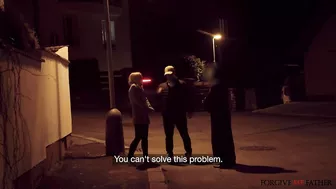 Description: While driving around late one night we spotted a couple arguing in the street. I decided to approach them and after introducing myself I discovered the guy had lost all his money at the casino. I wanted to help them out so I offered cash in exchange for spending time with the guys girlfriend while he watched. I led them over to the van and once inside I fed my rock hard cock to the attractive blonde before stripping her naked and fucking her from behind in doggy! Afterwards I pounded her tight snatch in missionary position which gave me a great view of her nice perky tits and then the sexy nymph bounced on my cock in reverse. We had an intense side fuck on the floor until the naughty minx hopped on top for another cowgirl style ride and I enjoyed spanking her curvy ass as she bounced her pussy on my dick. When it was time to cum I got her to suck me off some more until I blew a thick load all over her masked face!