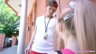 Description: When 19 year old student Jenny Wild is caught smoking by gym coach Stanley Johnson she gets kicked off the team! Jenny pleads with Stanley in his office after school but he maintains actions should have consequences. Not wanting to let go Jenny hikes her skirt and teases her teacher. Stanley tries to stay professional but Jenny shakes her subtle tits then sticks his hand between her legs so he can feel her wet pussy! Stanley bends Jenny over his knee and spanks her booty red then eats her ass and pussy from behind. Taking out his hard cock Stanley fucks Jenny doggystyle over his desk then she deepthroats his big dick. After riding his cock and taking it missionary Jenny catches her coach s facial.