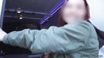 Description: My friend Martin brought me along for a ride in the confession van and we ended up seeing this beautiful red headed woman with big natural boobs. She was waiting for friends but when we offered her money and tech she agreed to come to the van for confession. Once we were inside we found out this woman was a true slut. She had fucked over 100 cocks and loved them really big. She showed off her boobs and her butt then I took out my big dick so she could give me a blowjob. I fucked the slut spoon and then missionary and she was very wet and tight. Finally after I had my fill of her I offered her a facial and she stuck out her tongue to taste my hot cum!