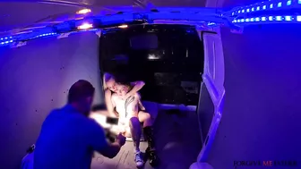 Description: We were driving in the Confession Van when we almost ran over Eden Ivy! I got out to apologize and picking up her bag to hand it to her noticed it was full of sex toys! I called her a dirty slut grabbed her throat and told her I would dominate her in the van. The submissive slut couldn t have been happier and jumped into the back. Once inside I sucked her pert boobs then put on a strap on and face fucked her with it. I slapped it on her face then she took the strap on in her tight wet pussy. We got naughtier and I stuck the dildo deep into her ass then fucked her missionary. We scissored and I got real horny so I told the slut to fist my pussy until I squirted!
