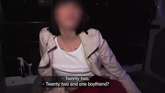 Description: I was handed this priest outfit by a pal and told to go approach this short haired brunette we saw on the side of the road. The 22 year old was single and liked money so she agreed to join us in the van for a confession. She tried to act shy but we didn t even have to pay her to see her small boobs. She told us how much she liked big dicks and she was very happy when I pulled mine out. I face fucked the little slut then pulled her panties to the side and pounded her pussy missionary style. We oiled her up then she rode my cock cowgirl. I smacked her ass until it was red and raw then came on her tongue!