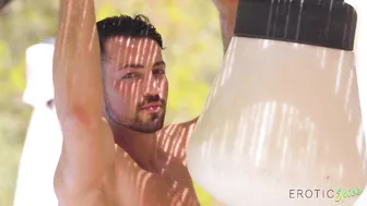 Description: Ebony hottie Tina Fire is sitting outside admiring the view... especially her view of hunk Jorge doing some handyman work! Jorge sees the sexy babe watching him and takes off his shirt to show his muscular chest so she raises the stakes and slips out of her clothes treating him to a view of her big natural tits and bubble booty before she puts on a hot pink bikini. Jorge joins Tina for some fun in the sun pulling out her massive breasts and sucking her nipples before getting her naked and eating her pussy. Tina loves the feel of the sun on her tits almost as much as his mouth on her clit then she sucks his cock and rides him hard. Jorge gives Tina a proper fucking before he cums in her mouth.