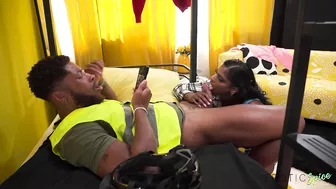 Description: The three Eternals are startled by Sheriff Robert s interrogation about the missing girl but he is dismissed to a later time. They de stress and prepare for his visit with a shared intimate moment between Kat and Mina.