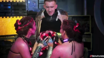 Description: Captain D vigilant starship captain comes upon a battle in space between sexy conjoined aliens Azlin and Zola and menacing femme fatale Trixana! Captain D manages to chase Trixana off and Azlin and Zola reward him not only with dirty delights but with the coordinates of an abandoned ship rumored to contain Digital Galaxy s most priceless treasure!