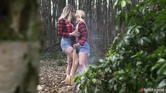 Description: These hot and horny lumberjack girls just adore playing with wood! When Danny arrives at their cabin distressed and looking for relief Giselle and Sarah know just how to handle his special kind of wood.
