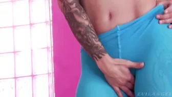 Description: Hot Luna Lovely is a trim tattooed sex freak with black hair hanging down to her hot ass. She loves showing her nasty talents on camera. Luna models blue pantyhose with a tiny pink bikini top and pink high heels. She reveals her perky titties constantly rubbing her crotch. From behind the camera director performer Mick Blue tells young Luna to turn her bubble booty toward the lens. Still in her leggings she sits on the couch and buzzes a vibrator over her twat. With the crotch ripped out of her hosiery Luna masturbates. She treats Mick to a slobbering blowjob. Luna worships his big cock gripping his balls while licking and slurping on his lengthy shaft. The nasty babe deeply rims his bunghole while stroking his prick. Mick bends her over and fucks her pussy from behind with his thumb in her bunghole for leverage! He stuffs his boner into her booty next Luna fondles her clit while Mick clobbers her colon. Intense anal fun includes rod riding sodomy rectal gaping and messy ass to mouth fellatio. When Mick ejaculates into her open mouth Luna swallows semen. SEE MORE