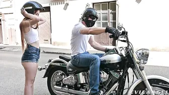 Description: Rocking teeny denim cut offs and a white tank top petite babe Megan Murkovski hops on the back of stud Matthew Meier s motorcycle and off they go. They arrive at Matthew s apartment. The mischievous redhead climbs onto his bed and sucks on a glass dildo. She plays with her little titties. Megan loses her shorts to masturbate her sweet pussy. Lucky Matthew gets to suck her snatch. Megan wraps her lush lips around his big cock for a skillful elegant blowjob. She straddles him riding with his prick in her twat. The delicate diva takes an anal drilling in spoon position. She bounces on his boner as it reams out her rectum. Megan spreads her legs as he pummels her sphincter some more. He buttfucks her doggie style. Matthew pounds her compact rump to gaping! The action comes to a creamy climax Megan sticks out her tongue and Matthew shoots his load on it. She lets the messy sperm spill onto her chin and chest. SEE MORE