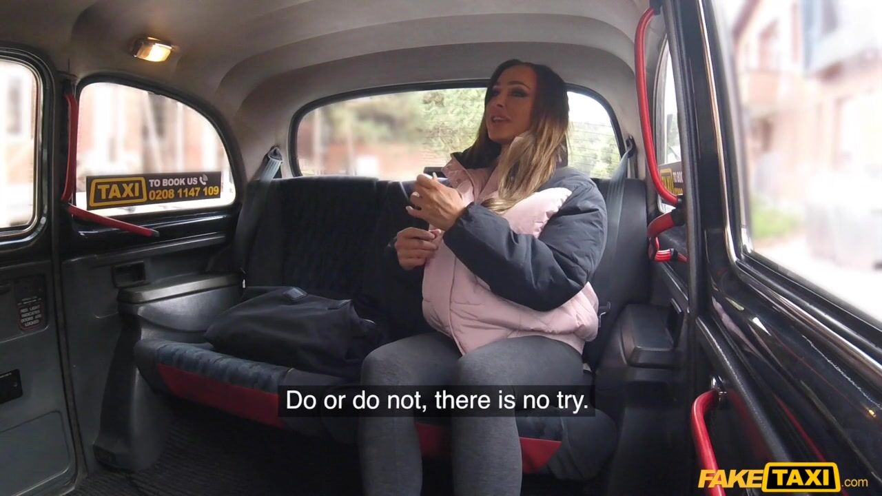 Description: Aubrey Black was in a rush to get the Prague Hotel for a big fitness competition. She had woken up late so she started to change into her bikini in the backseat and apply oil to her huge fake boobs. I had never seen a body builder before and was immediately turned on by her tanned thighs and booty. Her anxiety was going wild and there was a lot of traffic so I offered to help her apply her oil. I called a friend to ask about the traffic and it was gridlock so I told Aubrey I would take a prohibited road if she let me take pictures of her. Aubrey agreed and when I was in the backseat I offered her free rides to fuck me. Aubrey was horny so she sucked my cock then I fucked her pussy until I creampied her.