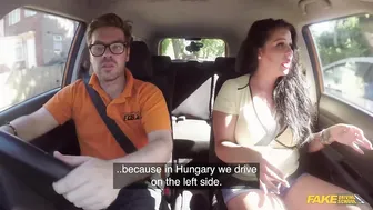 Description: Anissa Jolie had come from Hungary to the UK for school so she signed up for driving lessons with Fake Driving School so she could get a British license and drive to school. Anissa told me she was familiar with manual cars but just needed to learn how to drive on the other side of the road. I gave her a quick refresher course about the pedals clutch and steering wheel then Anissa got into the driver s seat so she could attempt to drive ten feet. I had asked her multiple times if she knew how to drive manual but she finally admitted she only drove automatic. I was very frustrated and took her back to the testing center where she asked me for more lessons. When I asked her how she would pay she took out her big tits! As I felt her pierced nipples she took down her pants and let me finger her. Horny she gave me a blowjob then rode my cock until I came on her pussy!