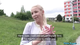 Description: When this blonde babe walked passed my I knew I just had to get my cock in her pussy. I pretended to be from a women s magazine and thatI needed to ask her a few questions from a questionnaire. Of course these questions were about sex. When she told me some of her sexual secrets I could feel my cock slowly starting to become erect in my pants. I had to cut the questionnaire short and just ask her how much it would cost me to fuck her. After some negotiations she led me to a subway where she agreed to fuck me. This was so exciting. It was in a public area. I can hear cars and buses passing by. I loved watching her ride my cock before I cum all over her sexy smooth ass.