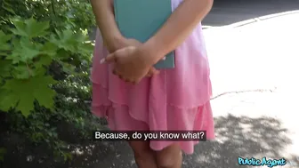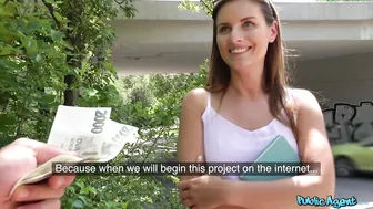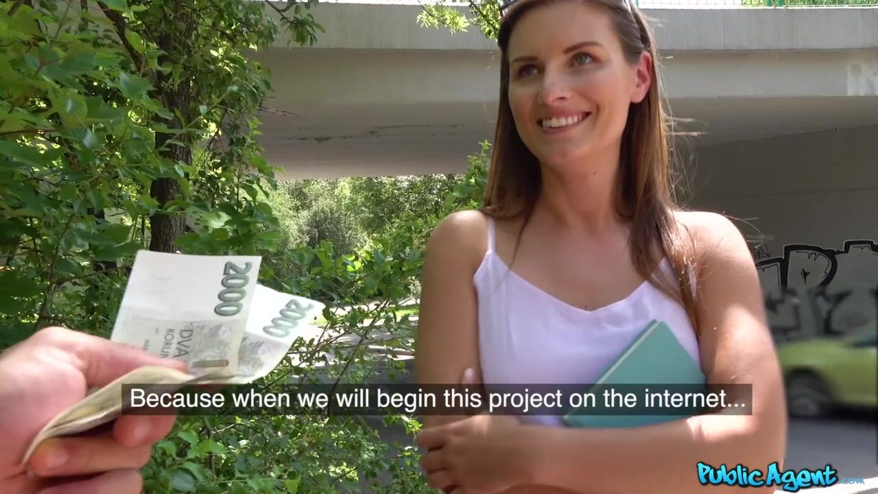 Description: I saw pretty brunette Jenifer Jane nose deep in a book on the street so I approached her and asked what she was reading. Jenifer told me she was a student at the local university studying sociology and that she was waiting for her boyfriend but he was running late. Jenifer had a very nice body so I asked if she trained. Since she told me she did I told her I was looking for new faces for an internet project about exercise videos and offered her some money to do a quick casting. For a good amount of money Jenifer showed me her beautiful boobs and round booty. Seeing her body made me horny so I offered her even more money for a blowjob. As she was sucking my dick Jenifer got horny and asked me to fuck her. I wasn t going to say no! We had hot sex on the grass then I came on her face!