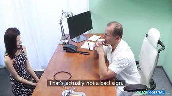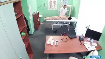 Description: I had a couple of patients left for the afternoon but it was winding down the for the day or so I thought. A young and pretty brunette came to see me for quite an odd problem. She told me that her tits and pussy were too sensitive. I tried to recommend her to a colleague of mine who might be better suited to look at the issue though she was determined for me to take a look. So I did and yes she was sensitive. Only a light brushing of my fingers through her thick dark bush of a pussy starting sending her wild. She then went on to say that her friend recommended her to me and that she wanted a special treatment. Now the penny had dropped I now fully understood what she wanted from our appointment. It didn t take me long to get her sensitive pussy soaking wet and minutes later she was holding her own mouth to dampen the screams of ecstasy as I pounded her thatched snatch. She must have orgasmed several times during our appointment. I hope she makes a re appointment soon for another therapy session.