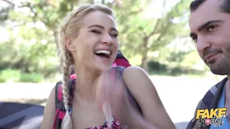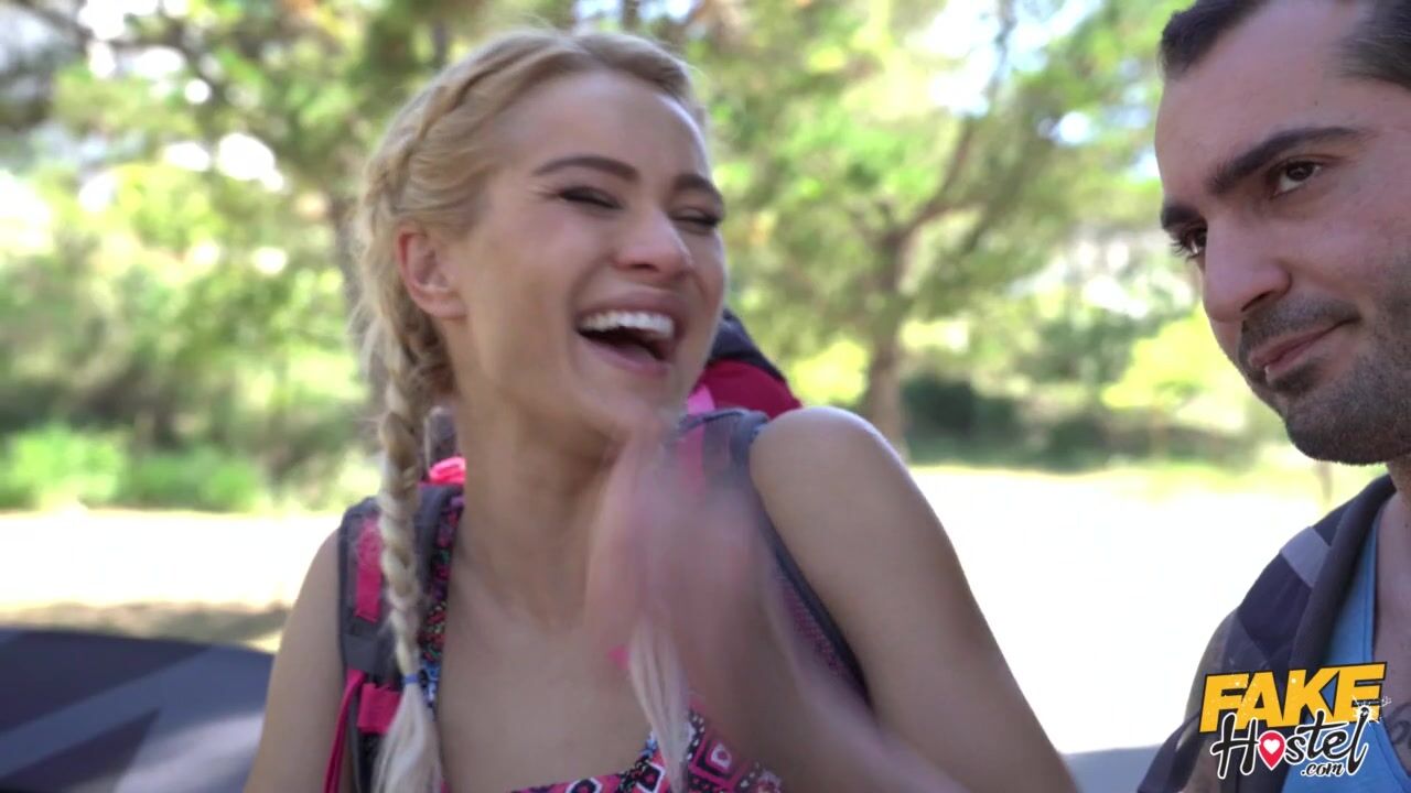 Description: When Miguel Zayas sees Cherry Kiss and Pablo Ferrari looking for a hostel he quickly invites them back to his place under the guise of being a hostel owner. Pablo is hesitant but Cherry jumps at the chance of spending the night in a big house with a pool. Throughout the day the horny blonde teases her man but every time they start to get naughty Miguel turns up to interrupt. That all changes when Pablo and Cherry are hooking up but he has to go to the bathroom. While her man is away Miguel pops up and starts eating her pussy. The returning Pablo is less than pleased but Cherry convinces him she has enough tits and ass for both of their hard cocks!