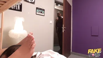 Description: Sahara Knite sees Dylan Brown in the Fake Hostel but he tells her she can t stay in his room since that bunk is taken by Franco Roccaforte. Inquiring where the man is Sahara sees him in the shower and gets an eyeful of his big black cock! Turned on Sahara invites Dylan into her room later. Dylan checks her out from the hall and sees her perky tits but suddenly the Landlord s Wife is behind him! Dylan goes into Sahara s room and she sucks his dick then he eats her pussy while the Landlord s wife fucks Franco then the lads swap ladies and stretch them out!