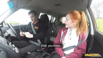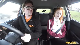 Description: I wasn t sure why Ella Hughes was coming back for another lesson but there she was getting into my car. The last time I saw the ginger with perky tits we had a threesome with Jasmine and the time before that I fucked her pierced pussy all over the car. To my surprise she was in a pleasant mood and told me she wanted a lesson before she took her examination later that day! I m not a miracle worker so I couldn t see how she would be ready. That s when she revealed her hand she had heard about our new examiner Marc! She didn t want a license she wanted his cock! Jasmine wasn t pleased about Ella s request but in the end she acquiesced. Ella was so thrilled that she decided to thank me with a blowjob then I fucked her doggystyle and left my handprint on her round arse! When she finished eating my cum she was off to see Marc. Busy day for Miss Hughes!