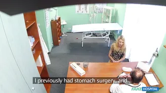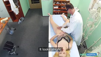 Description: This beautiful blonde sauntered into my office complaining that she had not been able to orgasm since she underwent some surgery on her stomach some years before. This was what I considered to be a very serious issue and I would not let her leave my office without it unaddressed. I got her onto the examining table and bent over her to closely to study her scar. Her scar seemed fine and her stomach was beautifully slim I could feel myself begin to get erect as my face was so close to her body. I needed to move this along and I told her that I would like to study her genitals as I had studied gynecology some years before. She laughed but humored me and I was soon performing a sensitivity test inserting my digits into her tight pussy. She couldn t feel anything so I told her I would need to perform an oral massage. She readily agreed and before she could realize what she had agreed to I was in between her legs sucking and licking her pussy with everything I had. After some amazing oral skills from me she had her first orgasm in years and I stood up with a big grin on my face. Now it was time to see if my cock in her tight pussy could produce even more orgasms and cure this patient once and for all.