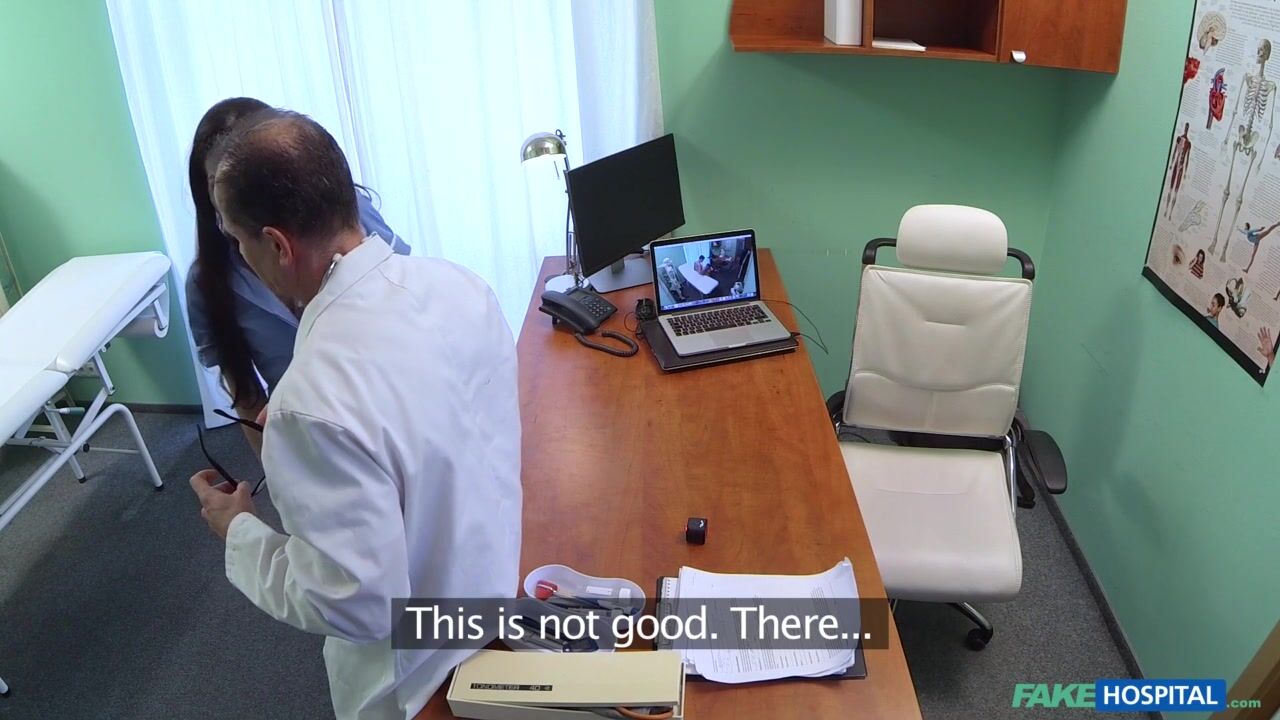 Description: Moments after I finished fucking one of my nurses a patient arrived with a truly unique problem. It seems she had a sexual dysfunction and had gotten a sex toy stuck in her snatch where she couldn t get it out herself. I told her to get on my table and relax and noticed as soon as I pulled down her pants and saw her shaved pussy that she wasn t wearing any panties. I put on my gloves and slipped a finger inside to try and get them out and although I couldn t believe it she started to get turned on and horny as I was fingering her! Our examination had only just finished when she was reaching for my cock and there s no way I could say no to a black haired babe as hot as Eva! She started to give me a blowjob with her big ass in the air then I turned her around and fucked her like crazy until I d cured her chronic horniness!