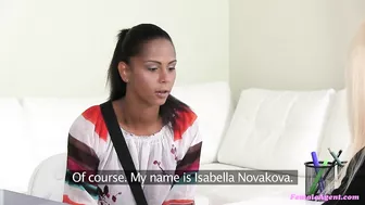 Description: Isabella 31 mins . Angel is my name but sinning is my game as I become the latest lucky fake female agent to cum on your screens. As you ll soon see I have a penchant for pussy and I m a curvy big bosomed sex machine that loves to lick the slick tight wet holes of lucky ladies. So as you can imagine this role was made for me. When the knock came on my office door I was ready and prepped having taken advice from some of the other female agents I was more then prepared. Then the absolutely drop dread gorgeous Isabella walked in and I almost forgot everything in an instant. She was beautiful what a lucky agent I am. We talked about modelling I took my pointers from my notes and I kept trying to swing the topic to erotic modelling but she was quite adamant that she wanted to stick to classic modelling. My assistant and I got her down to her underwear so we could see her body and then it was time for me to strike. I told her that if she made a sex tape with me for my private collection I could and would help her secure an amazing job. She asked for guarantees and I gave them licking my lips with anticipation. We settled on the couch and I released my big busty pierced nipples free from their confines. The next few minutes were spent lost in lust as we licked stroked probed and sucked each other all over. My orgasm was amazing this was one talented woman her own was quieter but very intense. I m getting wet just typing this as I reminisce. Time for me to go and for you to enjoy the show. See you all next time.