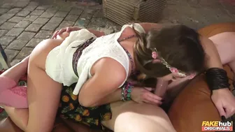 Description: Steve Q is hanging out in his favorite coffee shop when he notices Amirah Adara checking him out. Steve is distracted by the brunette beauty as the waitress takes his order and accidentally orders a whole cheesecake to himself. This draws Amirah to the couch where Steve is seated and before long the stunner has put his hands on her pussy. The pair begins to make out and Amirah plays with her tits while Steve eats her out then rimjobs her ass. After a passionate sloppy blowjob and a wet passionate fuck Amirah jerks Steve off onto her face and the two sit back down to enjoy some delicious cheesecake!