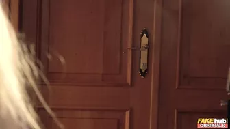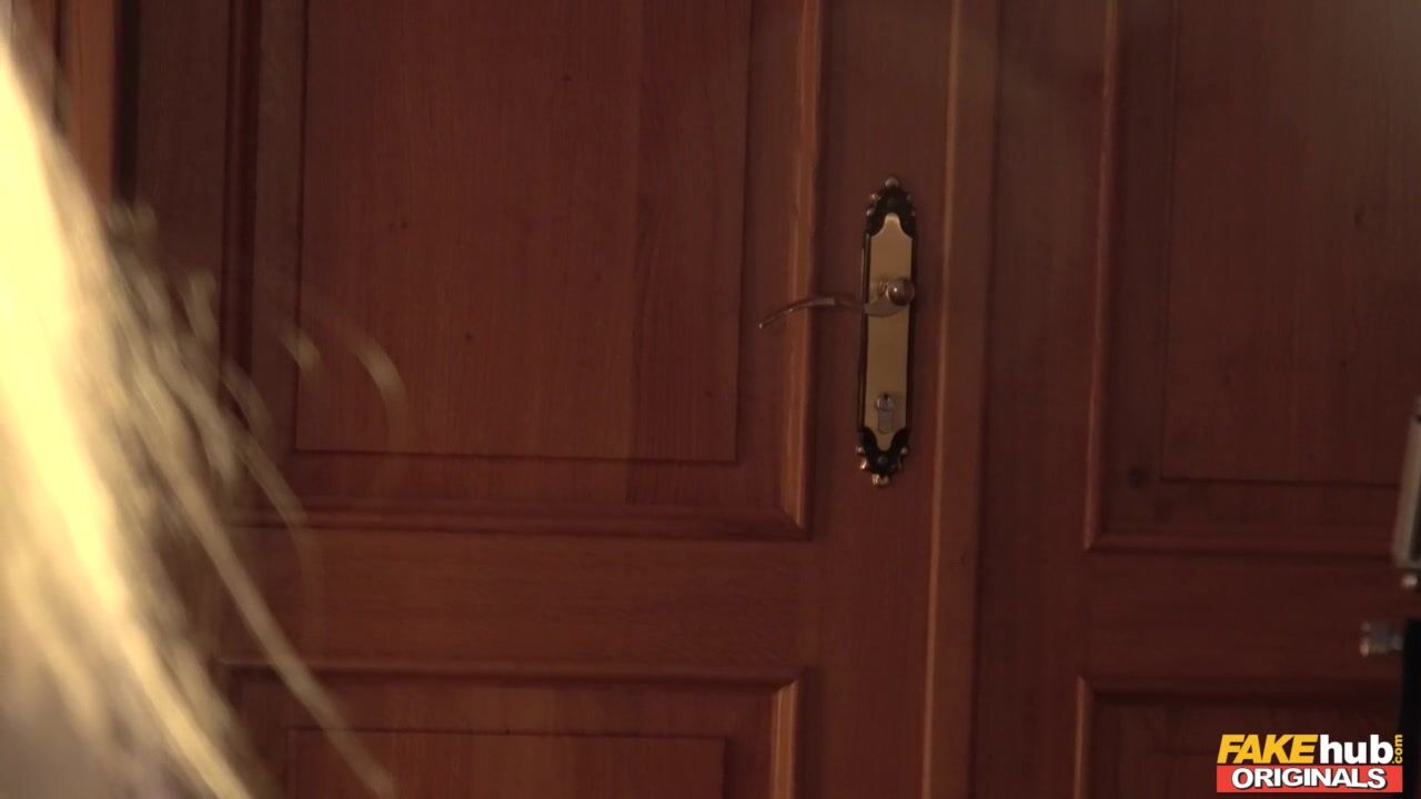 Description: When business woman Kathy Anderson hears a disturbance outside her office window she realizes Michael Fly is trying to break in! Kathy hides behind the door as Michael enters the room. Michael creeps through the office looking for valuables but unfortunately for him only finds office supplies! As he rummages through Kathy s desk the blonde MILF crawls under the desk and disarms him by giving him a handjob. Kathy pulls out Michael s cock then gives him a blowjob while playing with her tits. Kathy fucks Michael under her desk on top of her desk and then lets him cum on her face as sirens blare in the background!