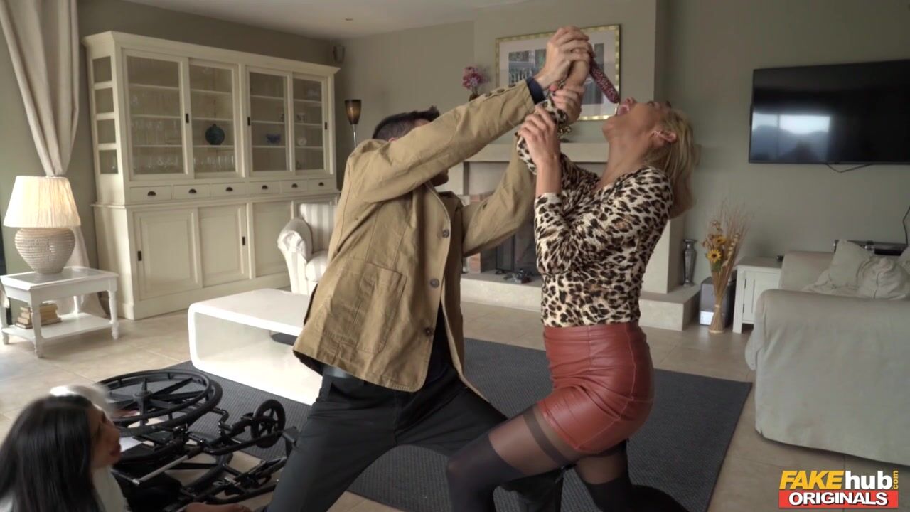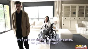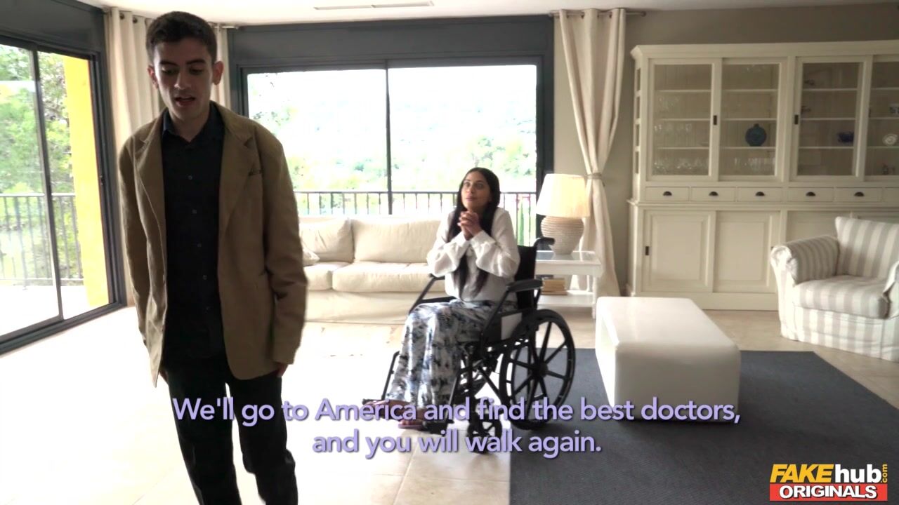 Description: When Jordi professes his love for the wheelchair bound Julia De Lucia he tells her they will run away to America to find her the best doctors and get her walking again. Only one thing stands in the way of the new lovebirds... Jordi s girlfriend Veronica Leal! Upon discovering the affair Veronica attacks Julia shoving her wheelchair to the ground. As Jordi and Veronica struggle Julia miraculously stands! She is cured! The ladies argue over Jordi s huge dick and then compete to see who can give him the better blowjob. Veronica tries to sway Jordi with her ass and Julia uses her big tits then each lady lets Jordi fuck them to determine who has the better pussy. All the sex turns them all on and by the end of the threesome Julia and Veronica are helping each other get off then Jordi covers them both with a double facial!