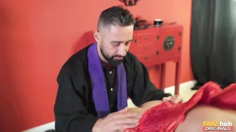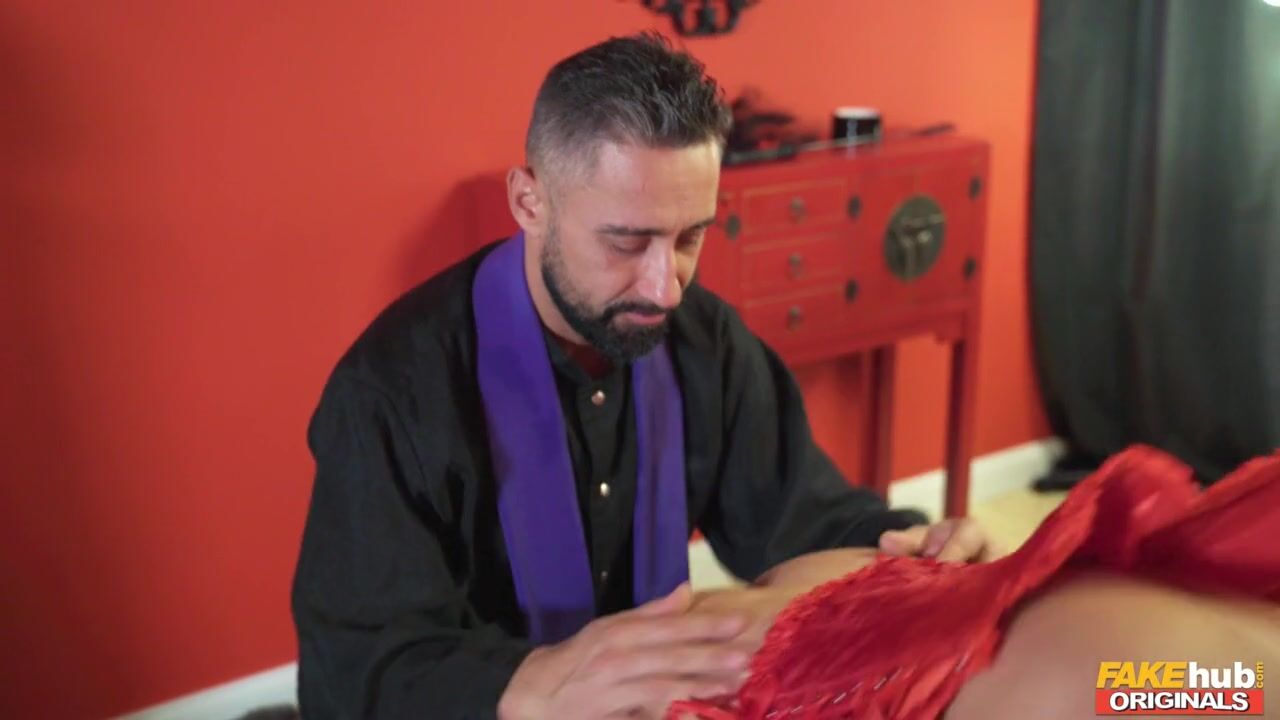 Description: There is a mystery afoot chez Blondie Fesser and Cassie Del Isla Blondie can t stop masturbating! Innocent Cassie calls in Father Mugur Porn to perform a righteous ritual and dispel the presence. Blondie is in her room on the bed and the thick blonde is dressed in red lingerie. Vigorously flicking her bean Blondie squirts all over the priest who gets down to work by stripping and eating her ass. Lots of spanks later Mugur is plunging his cock balls deep into Blondie who moans in delight of his ritual. Cassie joins in with a strap on and fucks Blondie s pussy while she gives Mugur a blowjob and he squeezes her big titties. Cassie also gets her fill of cock then Mugur leashes them both and covers them in cum!