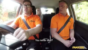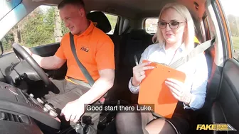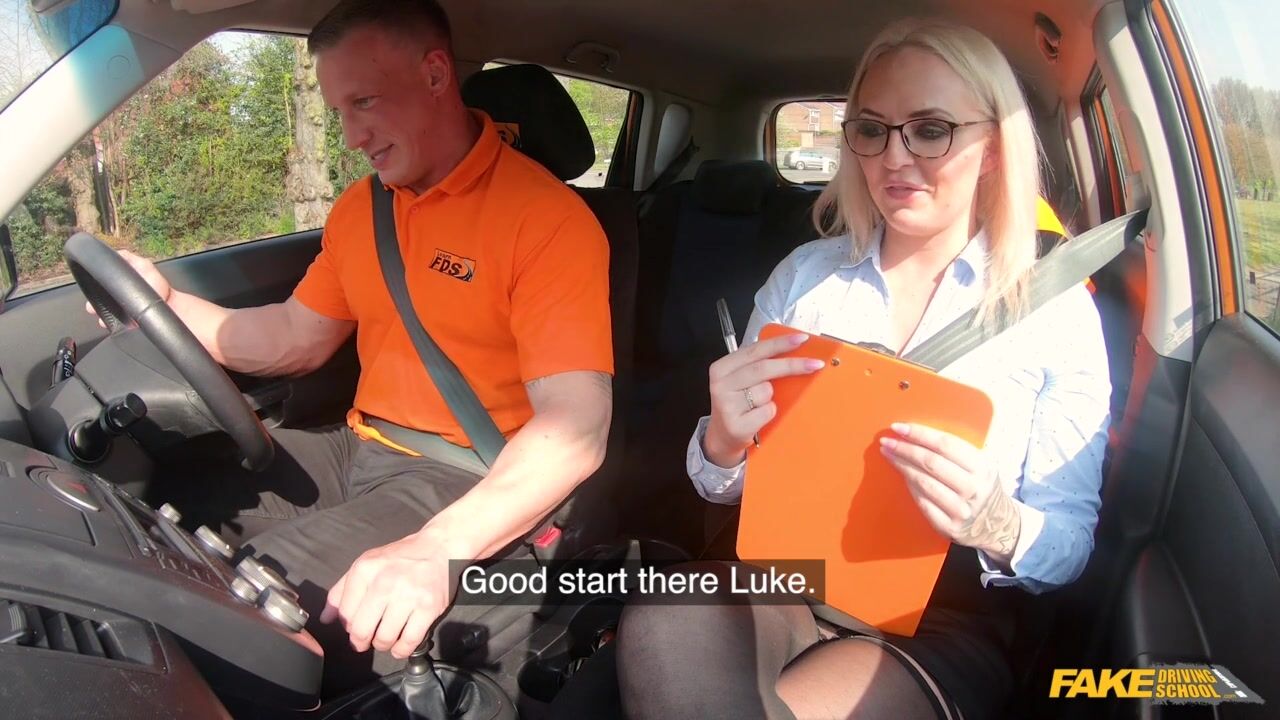 Description: I had been training with Ryan to be an examiner for FDS and I suppose we ve been seeing each other on the side but I couldn t take my eyes of Luke Hardy today. His biceps were just so big! Luke was training to be an instructor so Ryan took us on a dual lesson. I guess somewhere between reversing around the corner and the emergency stop Luke and I got into some fun banter and he was really turning me on. When Ryan got out of the car to head to the testing center I pounced on Luke s big cock. He had magic fingers and made me squirt so many times! I rode his dick all over the backseat even gave him a rimjob then wanked him off all over my big tits. Don t tell Ryan!