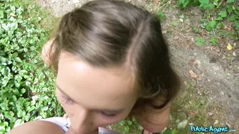 Description: I saw a slim beautiful 19 year old dirty blonde named Stacy Cruz walking to the bus so I stopped her and told her my friend owned a modeling agency. I offered to give her 5000 crowns for a casting right there and was delighted by her big natural tits and firm ass. I then offered her 10000 crowns to give me a blowjob. She was hesitant but also turned on by the offer so soon she was sucking my cock and taking my dick in her pussy doggystyle. I came all over her ass!