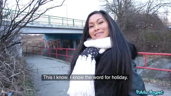 Description: It s pretty rare to see a Thai beauty like Suzie Q walking the streets of Prague especially one who only speaks Italian! Using my phone to translate I told Suzie that I was a rich man with a lot of money. We might not have spoken the same language but cash is understood universally so when I offered 300 euro to show me her tits she followed me to an underpass and flashed me. That s when I had the idea to pay her 500 more euro if she came to a nearby gas station toilet I knew of to suck my dick. We drove there in my car and once inside her eyes lit up at the sight of my huge cock. She sat her tight ass down on my crotch and took my cock deep inside of her and we fucked hard until I came on her face.