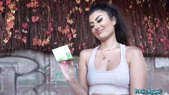 Description: I noticed Marina Maya s smoking hot body from a distance. She was wearing tight spandex that really showed off her amazing ass so I approached to ask her when the next bus was coming. Marina was from London and was in town with her boyfriend on vacation. I asked her if she wanted to earn some money while she was in Prague and she was interested in being a model. I offered her some money for casting and 600 euro later she flashed me her perky tits and ass. I wanted more but Marina didn t want to cheat on her boyfriend though she did offer to jerk me off as a thank you. We found an abandoned basement and Marina fell in love with my cock. She stroked it then sucked it then let me fuck her tight pussy all kinds before I came on her face!