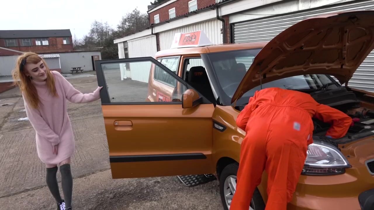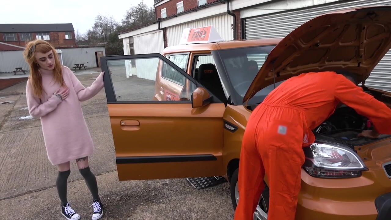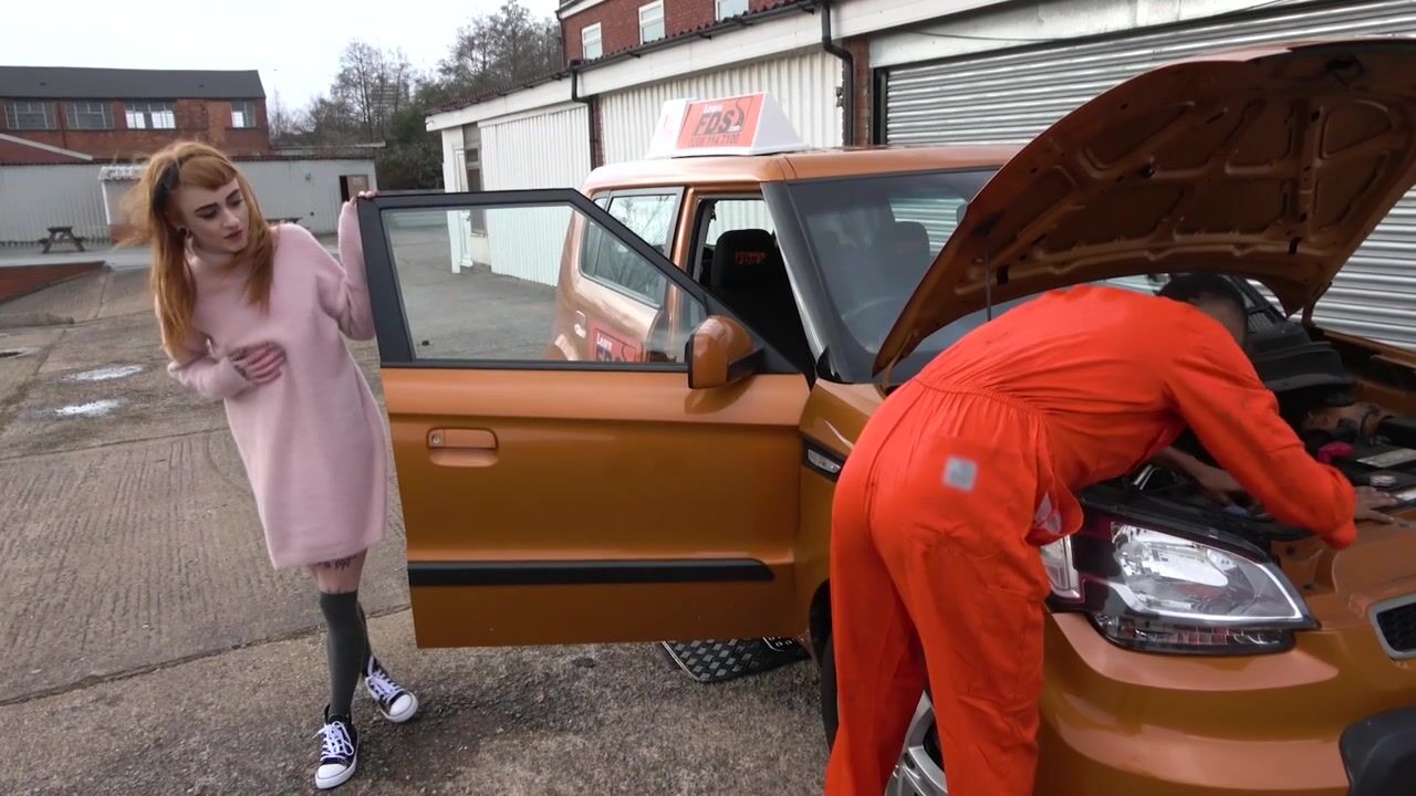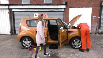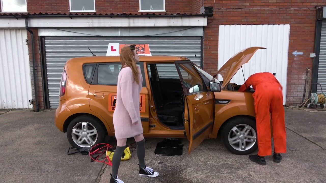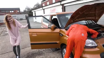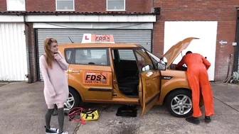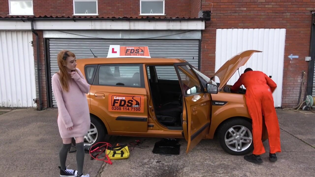 Description: Fake Driving School Head Instructor Ryan Ryder has a lesson scheduled with alt lass learner Azura Alii but the Mean Orange Machine won t start! Fortunately for Ryan the mechanic he calls sends Mr. Longwood a student at LFDS. Ryan heads into his office to call Azura Alii leaving Longwood to work under the car. As the mechanic fixes things Azura arrives. Once Longwood has performed his diagnostic and repaired the spark plug Azura asks to warm up inside the vehicle and Longwood a gentleman starts the car and helps the petite woman heat things up!