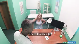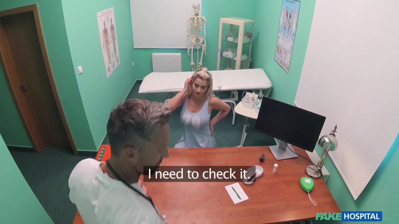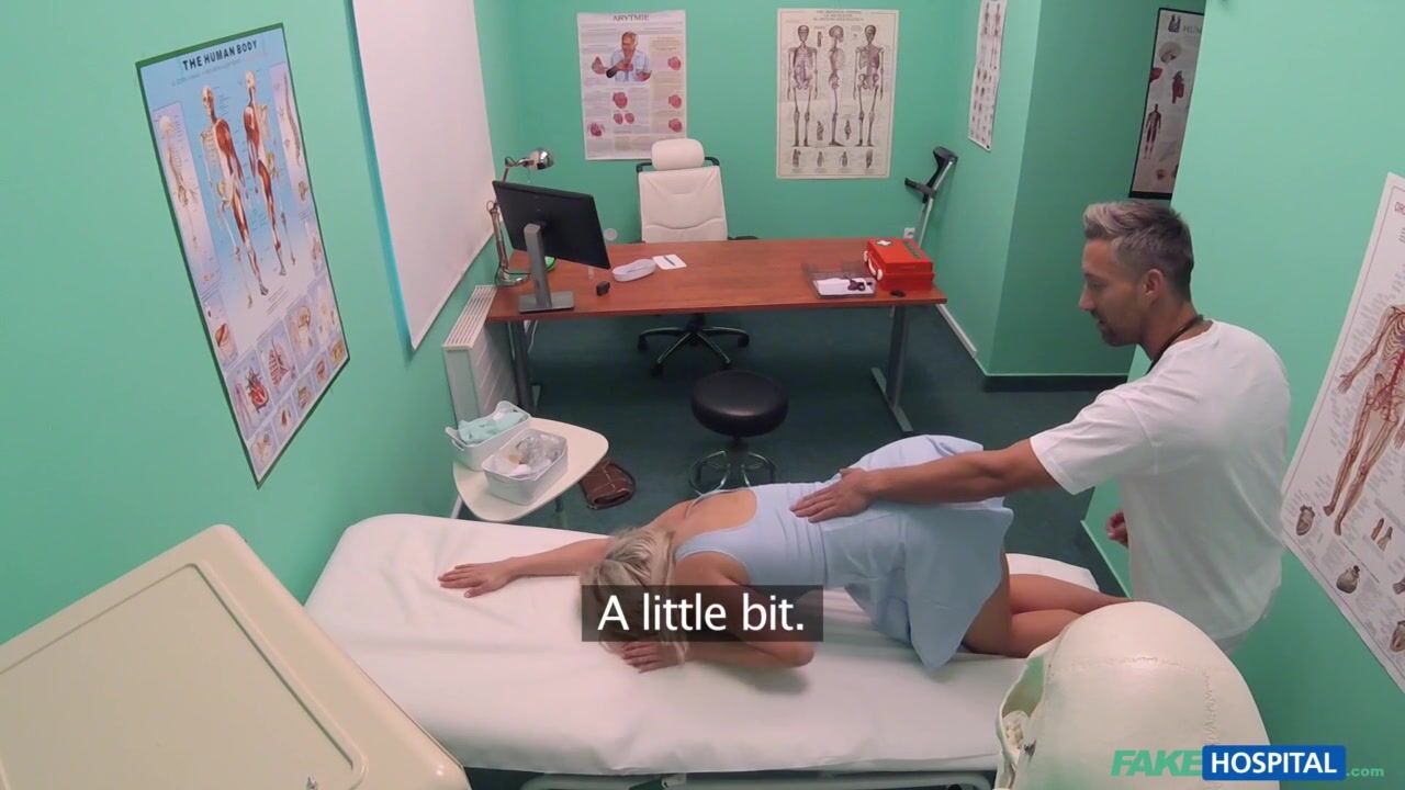 Description: I was sitting in my office horny as hell when in walked Sienna Day. A fit blonde beautiful woman Sienna was having some back pain. Occam s Razor suggested it was her massive G cup big tits causing strain on her back muscles so I had her lie down for a massage. As I rubbed her lower back I saw up her dress she wasn t wearing any panties and her tight pussy made me instantly hard! I had her stick her ass out to do some stretching and when she got far back enough I slipped my cock right inside her. She was a little surprised but I told her a nice fuck would straighten her right out. After making her cum multiple times I finished all over her pretty face. Her back might ve still been sore but with enough sessions I m sure she ll forget all about it!