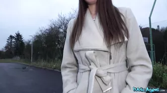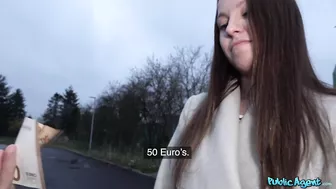 Description: I saw Mishelle Klein get off the bus and her long slender figure caught my attention. She didn t speak much English but I spoke slowly and explained that I was a fashion agent looking for runway models. I offered her some euro to see her body and she shows me pert and natural boobs. Since it was kind of cold I offered her more money to come back to a hotel with me so we could continue the casting and upon arrival Mishelle stripped down to a black thong that really accentuated her round ass. I was turned on so I offered her some more money to eat her pussy and she accepted. Once she felt my tongue between her legs Mishelle wants some dick so she gave me a blowjob then I fucked her in the hotel room until pulling out and cuming on her stomach!