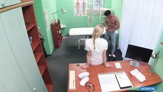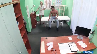 Description: I was glad I came into work this morning when my next patient walked in he was a young man with a great body and I was hoping to get a good look. He complained about a shoulder injury while working out in the gym after taking some of his details I asked him to sit on the examination table where I began running my hands over his strong big arms I could tell he was enjoying my attention so I then asked him to remove all his clothes. Then I gently run my fingers up over his legs slowly working my way to the top as I lifted his underwear he lightly gasped as I held his cock in my hand when I arched my back leaned over and slowly inched his cock into my wet warm mouth. I could feel his pleasure trembling through his cock and with his sexy muscles tensing with each slip of my tongue I wanted to feel him inside now more than ever.
