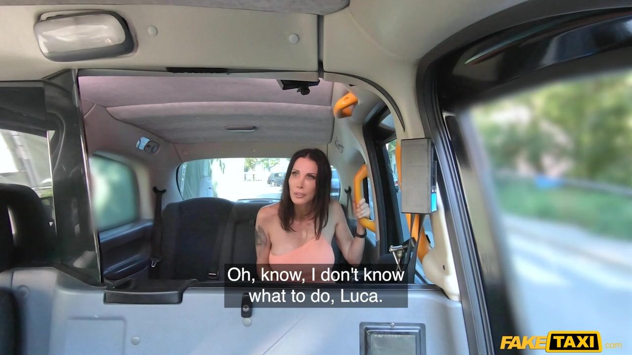 Description: Today I picked up this stunning brunette who was looking for her husband. Shay Sights suspected her partner was cheating on her and she wanted to catch him in the act. When we finally located her husband Shay was upset to see him with two pretty European ladies. After parking the Fake Taxi I joined the tattooed babe in the backseat and comforted her. I pulled aside Shays thong and started playing with her pussy and then she returned the favour by sucking and slurping on my long thick cock! She wanked me off between her big juicy titties before planting her tight snatch down on my lap and riding me cowgirl style. Afterwards I banged the horny MILF in missionary position and then we did some spooning in the back of the cab. To finish I fucked her from behind doggystyle and then I spanked Shays curvy ass before pulling out just in time to leave her with a sticky facial!