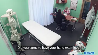 Description: I had a patient arrive this morning who had sustained a nasty arm injury whilst playing football. He was here to see the doctor whom he had seen before and was just coming in for a check up to see how it was healing. I took a few basic notes before asking him to remove his shirt. I had a look and took him over to the examination table where I tested his sensitivity. All seemed to be normal. Then almost from nowhere he come up behind me and gently grabs my hips! I told him that this was no way to test sensitivity! So he sat back down and I went behind the desk. But my mind began to wander I started gently rubbing my foot against his leg and found it slowly creeping up towards his groin region. He started rubbing my foot gently. I was so turned on. I had to have this guy! I got up walked around to him and sat on the desk he lifted up my skirt and started licking my pussy! This was a different day at work to say the least! He came over to where my mouth was and stuck his cock in! I love giving a guy a blowjob upside down! I know what he really wanted though. He wanted his dick thrusting in and out of my pussy. So we went over to the examination table and he started fucking me hard from behind! I had to keep quiet though even though I just wanted to scream in ecstasy! He got on a stool in the middle of the room and I slipped my pussy over his hard cock and gave him the best ride hes ever had! We finished just where we started he emptied his load all over my mouth and face! A different day indeed.