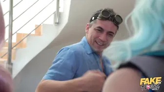 Description: The Landlord puts the finishing touches on his greatest creation two sex robots in the form of Lovita Fate and Mishelle Klein! Programmed for his pleasure the Landlord invites the robots downstairs then presses the play button. On command they take off their backpacks and go right to giving him a double blowjob. The Landlord strips his robots to reveal the perky tits and round asses he built then lies Lovita back on the couch so he can taste her pussy juices. The Landlord fucks Lovita then bends Mishelle over so she will eat Lovita s pussy as he fucks the blue haired robot in the ass! The Landlord takes turns pounding pussies and asses on his sex robots before cuming on both their faces then powering them down for the evening.