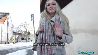 Description: I was walking with my friend Max when we saw Amber Jayne standing alone by the bus stop. We got to chatting and Amber told us she was visiting Prague with her husband and while he worked she was doing some sightseeing. She was shy about being on camera so I offered her some money for a quick casting. For more shopping money Amber showed us her big nice boobs and then for around 800 euro agreed to come back to a hotel room so we could film her giving Max a blowjob. Sucking his dick made her horny so I got some great footage of her ass as Max fucked her doggystyle then he came all over her stomach!