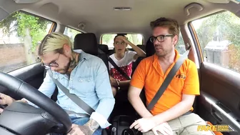 Description: I knew I shouldn t have gone to the pub with my mates last night I just knew it! By the time I got the Mean Orange Machine in gear I was an hour and a half late and two lessons down. JT my boss was right angry with me so I knew it was my last chance or I d be tits up. My two lessons today were a California girl with a big ass named Cassidy and Dean a farm boy covered in tattoos. Both said they knew what they were doing Dean having driven a tractor and Cassidy automatic in the States. Neither of them had a clue so I had them park to practice maneuvers. That s when it happened the car ran out of petrol. While I ran up the road for 30 minutes it seems Dean and Cassiy got to know each other a little better and Cassidy gave him one hell of a blowjob! Dean got to find out why California girls are known for having the best pussies and fuck like complete freaks.