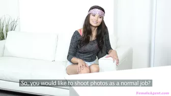 Description: I had beautiful Asian woman Miyuki Son on my couch this morning. She was gorgeous with big natural tits that I could not look away from. Miyuki came from Japan in search of modeling opportunities. She had already had several shoots for reputable magazines but it wasn t making her enough to pay her bills. I asked her if she had ever tried nude modeling she responded with a shy smile. She had a supermodel s body so I asked her to strip for me. Once again her shyness took over so I started kissing the back of her neck. She had never been with a woman but she was curious so I sucked her big boobs. That turned Miyuki on and she let me taste her wet pussy. After she came on my tongue I bent over so she could eat my ass and make me cum too! Finally I spooned her as I made her climax with my fingers.