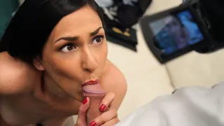 Description: Ashely Ocean found her way to my casting couch today. Ashely had found one our ads online and contacted us for an appointment. She wanted to be a model and her pretty face and long brown hair seemed suited to the job. Ashley was a little shy but also loved the idea of money and travel so I asked her to strip so we could take some casting pictures. She was wearing a sexy black set of bra and underwear that really showed off her perky boobs and big booty. Seeing her like that made me horny so I told her that the most comfortable girls got the best jobs and put her hand on my dick. Ashely quickly got to work and gave me a blowjob then I had her kneel on my couch so I could fuck her doggystyle. After some cowgirl and missionary the velvet feel of her tight pussy made me want to orgasm so I came all over her face!