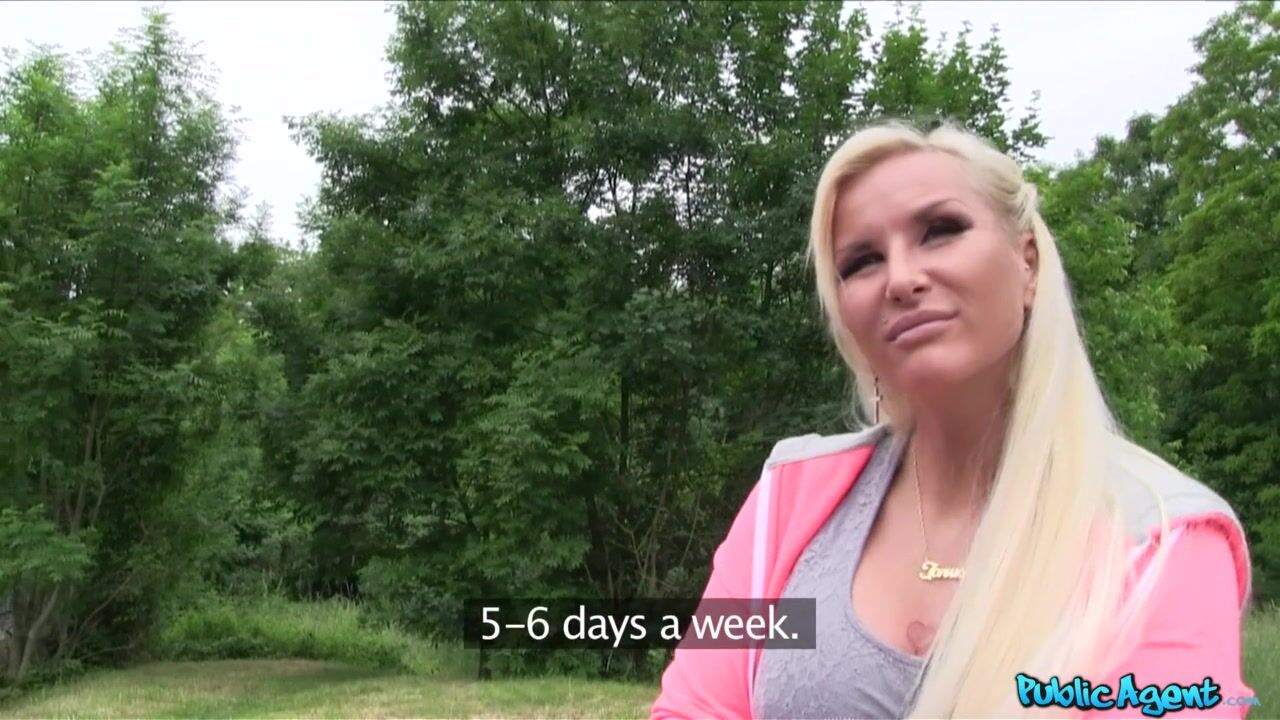 Description: Oh how I love to fuck slutty blonde women. I had to give her my bullshit story about my fake modelling agency but this filthy blonde did not take too much convincing that I was a real modelling agent. She did not hesitate when I asked her to come with my behind a bridge to show me her figure. When she lifted up her t shirt she revealed a huge pair of tits without a bra. Looking at her big boobs gave me a hard on straight away. There was only one place that my dick wanted to go and that was straight into her vagina. I showed her my big wedge of cash and she dropped to her knee s and deepthroats by fat cock before bending over and getting fucked from behind.