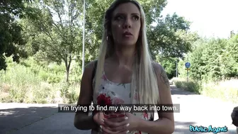 Description: I saw Sophia Grace wearing a little white dress and she looked lost so I walked up to her and started chatting. Sophia was a blonde woman from LA who told me she had hopped a plane on a whim and come to Prague but with no contacts no friends and nowhere to stay she had quickly run out of funds. I told her we could help each other since I was casting for an advertising company. For a few euro Sophia walked off with me into a tunnel and stripped her dress off so I could see her pert tits and her great ass. For a bit more Sophia gave me a blowjob and sucking my cock made her horny so she let me fuck her wet pussy until I could cum on her face.