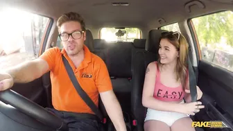 Description: Spanish lass Lara Duro was my student today. Lara immediately got to talking about how excited she was to be in London. Lara started thanking me for being her chauffeur and what I thought was a language barrier ended up being a complete misunderstanding. I told Lara I was a driving instructor but she was cute so I offered to drive her around Birmingham for an hour if she paid me. This worked out well enough for the Spanish lass and made her happy so we headed back to the testing center so I could postpone my next lesson. When we arrived Lara immediately got close and kissed me! She asked me if I liked boobies and took hers out then stroked my cock as we made out. Stripping naked she showed off her ass and pussy before climbing on top of my dick and riding me. We fucked all over the Mean Orange Machine and I ultimately came all over her face with a facial!