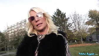 Description: I had just come from a winning streak at the casino and feeling like Lady Luck was on my side when I saw hot blonde MILF Tiffany Rousso. I walked up and asked her what she did for a living and she told me she was a married hairdresser. I figured she might want to earn some money and I was feeling generous so I thought I could spend some of my casino winnings on her if she would flash me her perky tits! Tiffany liked money so we headed to a private location and she flashed me her boobs then her bum too. For more money Tiffany sucked my cock then took my dick in her pussy until I came on her face!