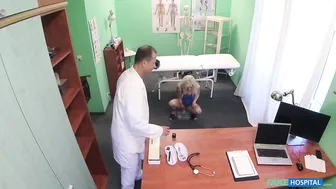 Description: My day brightened when this tattooed blonde Vanessa Sweet walked in and my jaw dropped to the table. She needed some pretty heavy duty attention from a doctor and first I needed to call her old physician just to confirm a couple things. Vanessa was supposed to end up at a specialist but I certainly wasn t to turn down a chance to play doctor and get my hands on her myself! After checking her temperature I needed her to piss in a test tube for the lab. But when I came back into the lab Vanessa was still having trouble so I offered to distract her by fingering her until she was ready to let it flow. Instead of loosening her bladder my fingers in her shaved pussy made Vanessa so horny she propositioned me for sex. After she got on her knees and gave me a sloppy blowjob we fucked right there on my table boning all day in my office while the cameras filmed it all!